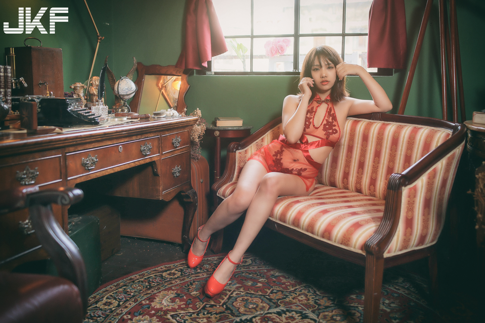 熙玥不愧是擁有許多作品的麻豆,面對鏡頭游刃有餘,神情姿態都萬分嫵媚!透膚戰袍下有著火辣的肉感曲線,不論是E奶還是翹臀美腿,或是時不時刷存在感的神秘腿間,都好引人遐想。▼攝影師James Chiang的作品