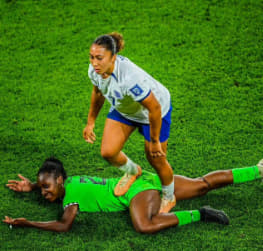 在昨晚进行的2023年女足世界杯1/8决赛中,英格兰在120分钟内与尼日利亚战成0-0平,最终通过点球大战4-2击败非洲雄鹰晋级。比赛第87分钟,英格兰球星劳伦-詹姆斯因故意踩踏对手被红牌罚下。