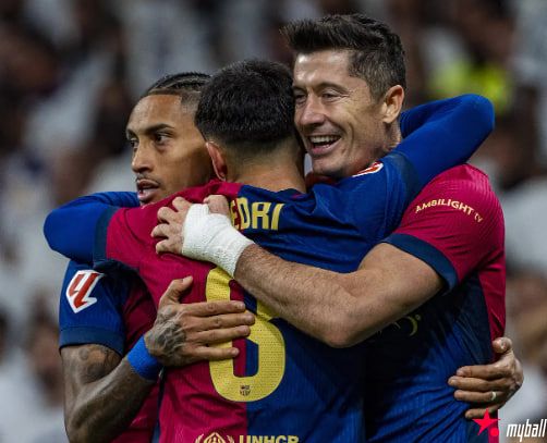 第68分钟,莱万门前再次获得绝佳机会,在禁区内右侧接到队友的横传,一脚抽射,皮球高出横梁。第71分钟,姆巴佩获得一个半单刀机会,杀入禁区内的抽射,皮球被门将化解。第77分钟,米利唐后场超远距离的吊门偏出。第78分钟,佩尼亚长传策动,莱万中线附近头球摆渡,拉菲尼亚得球抹过巴斯克斯带向前场中路,直塞禁区右侧亚马尔插上一停,小角度爆射上角破门,巴萨3-0皇马。