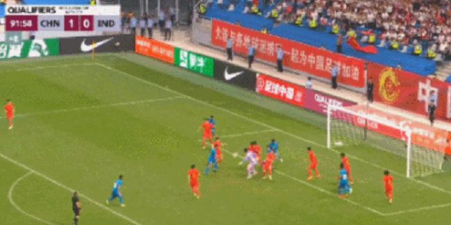 第93分钟,印度任意球开出,胡荷韬解围踢到段德智自摆乌龙,国奥1-1印度。