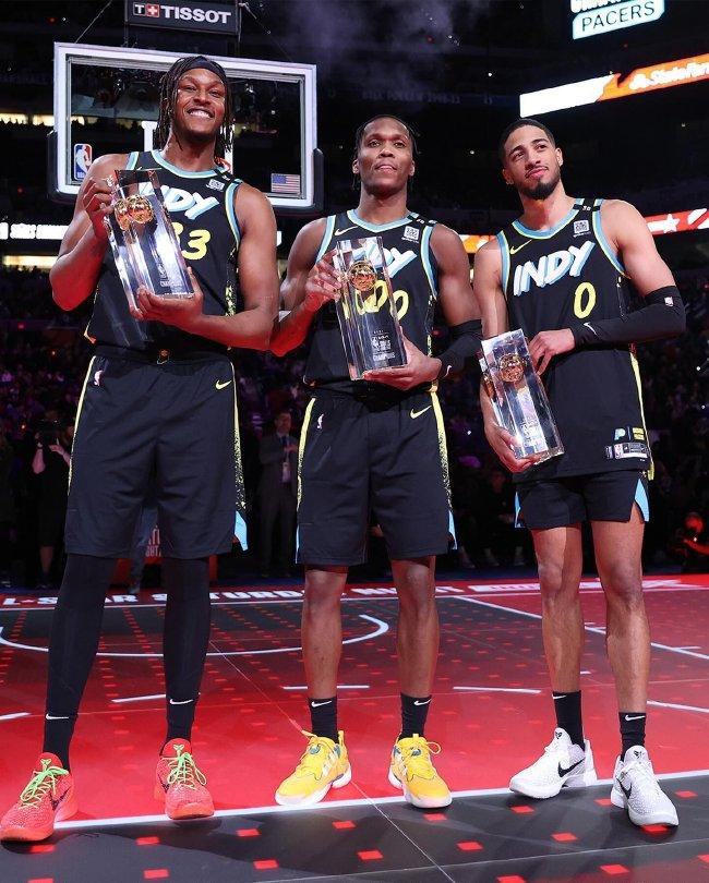 最终,哈利伯顿、马瑟林和特纳组成的步行者队夺得技巧挑战赛的冠军。